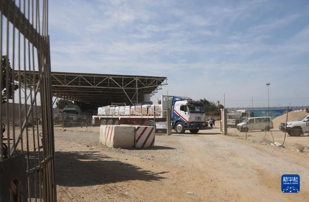 10月21日,裝載有人道援助物資的貨車(chē)通過(guò)拉法口岸進(jìn)入加沙地帶。