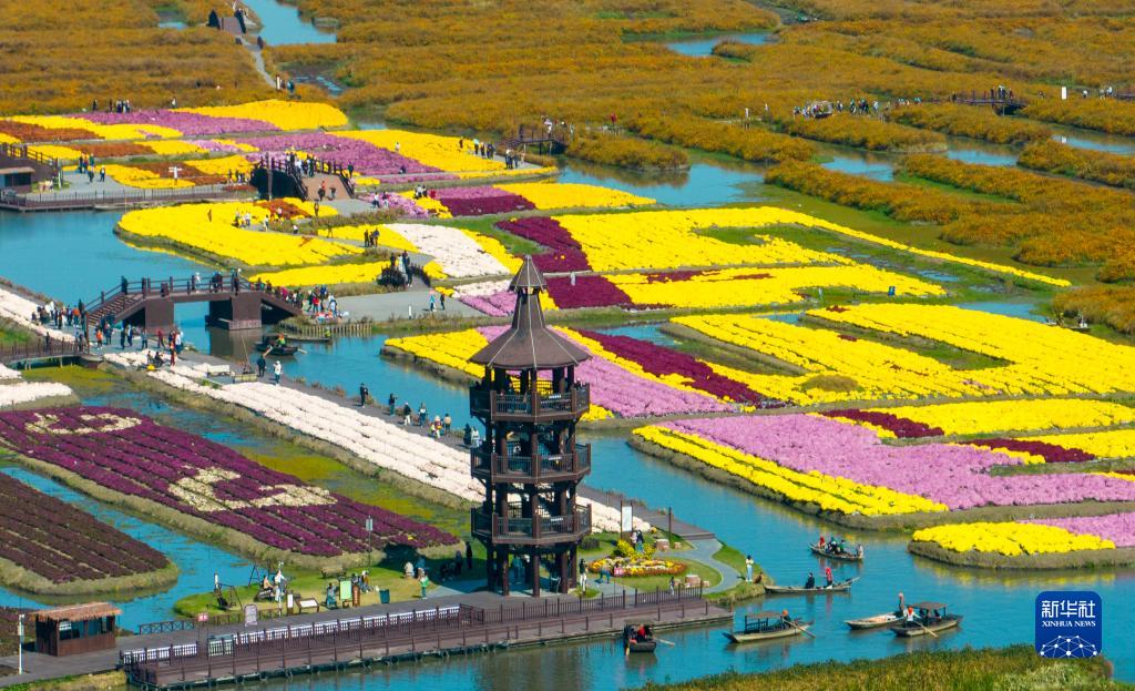 10月21日,游客在江蘇省興化市千垛景區賞菊游玩(無(wú)人機照片)。
