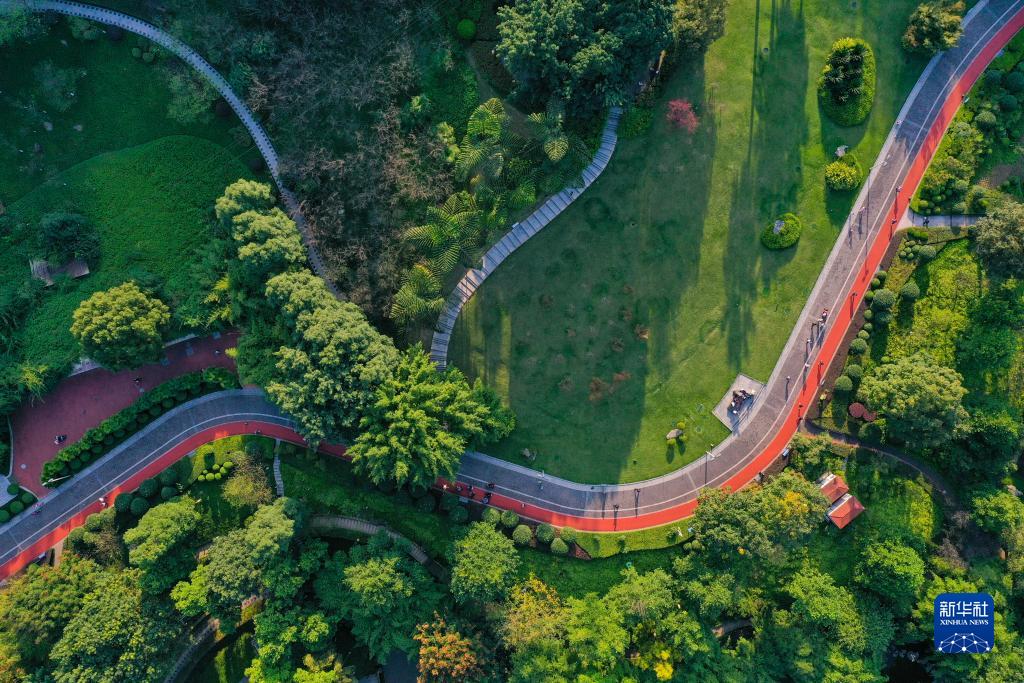 10月21日,市民和游客在重慶渝北龍頭寺公園運動(dòng)、游玩(無(wú)人機照片)。
