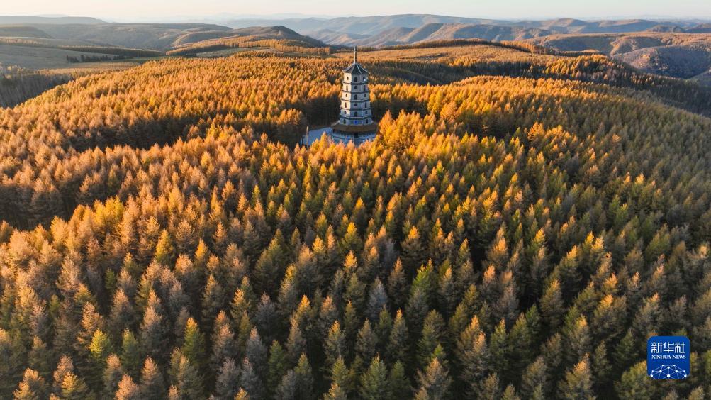 10月14日在河北承德拍攝的塞罕壩國家森林公園秋景(無(wú)人機照片)。