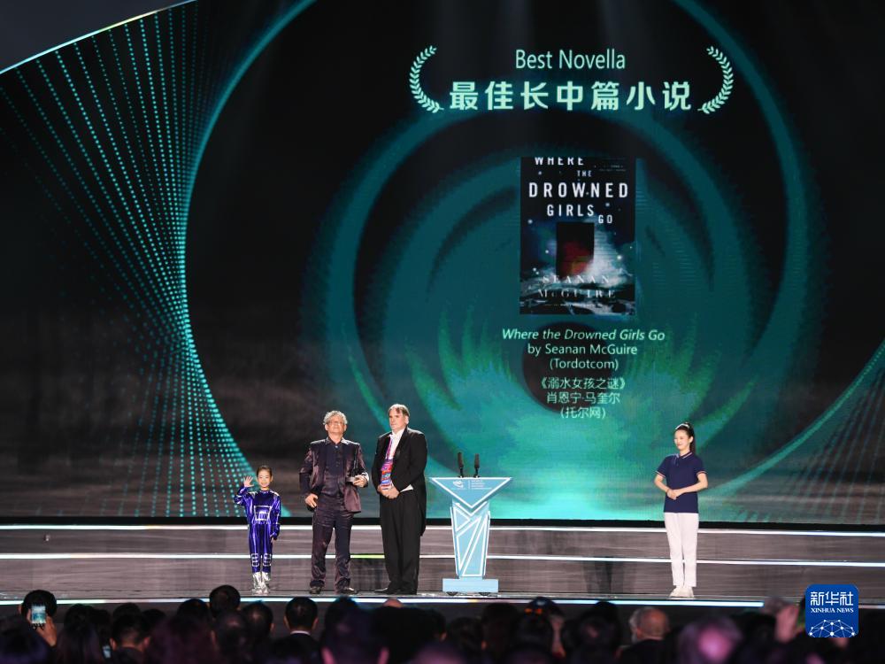10月21日,嘉賓為最佳長(cháng)中篇小說(shuō)《溺水女孩之謎》頒獎。新華社記者 王曦 攝