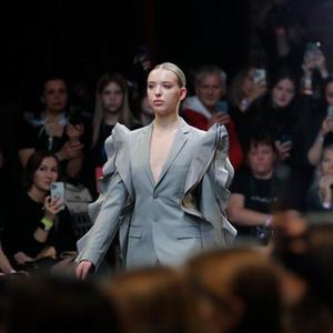10月21日,模特在俄羅斯首都莫斯科舉行的伏爾加時(shí)裝周上展示時(shí)裝。