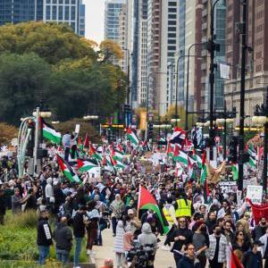 芝加哥民眾游行聲援巴勒斯坦