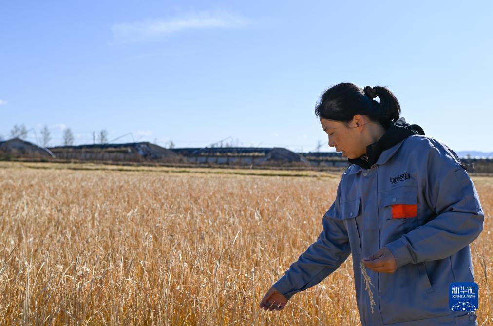 10月20日,劉春艷在琿春市三家子滿(mǎn)族鄉東崗子村的水稻田里查看水稻長(cháng)勢。