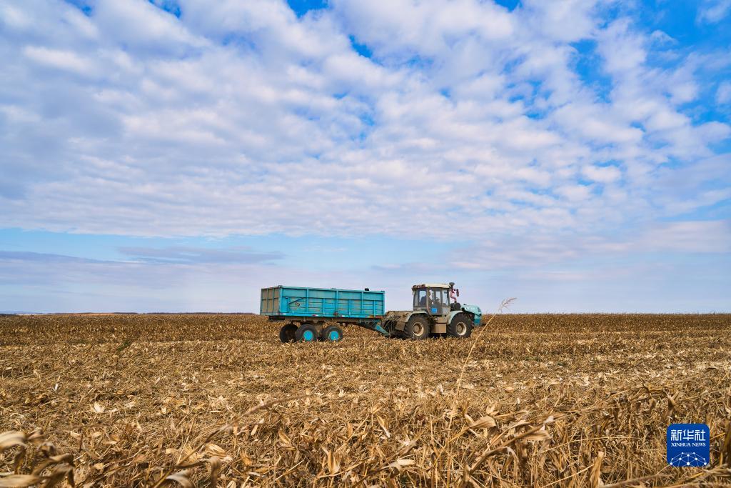 10月22日,在俄羅斯遠東城市烏蘇里斯克,一臺拖拉機停在收割后的玉米地里。