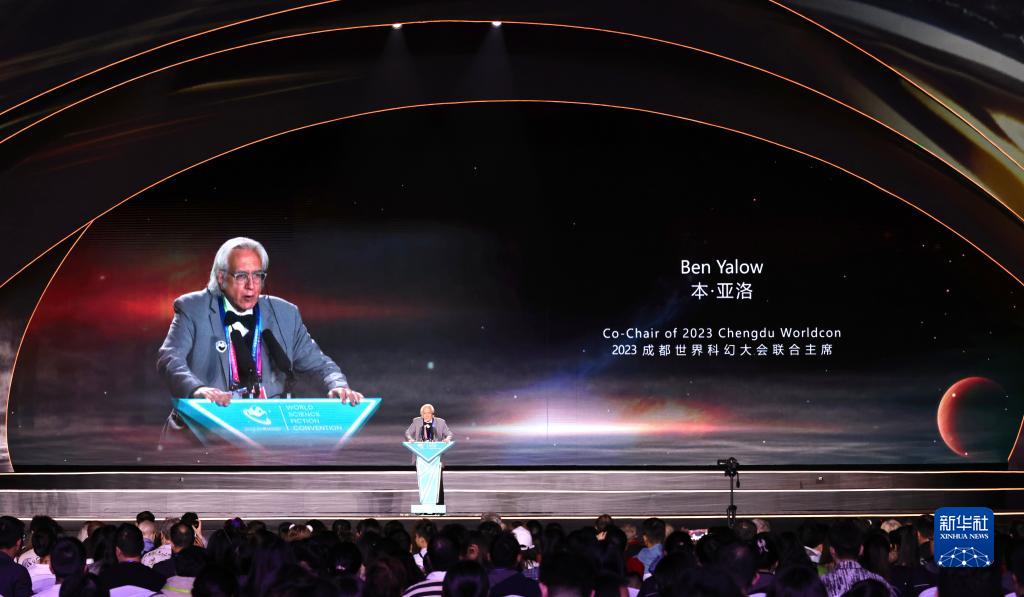 10月22日晚,在第81屆世界科幻大會(huì )閉幕式上,2023成都世界科幻大會(huì )聯(lián)合主席本·亞洛致辭。
