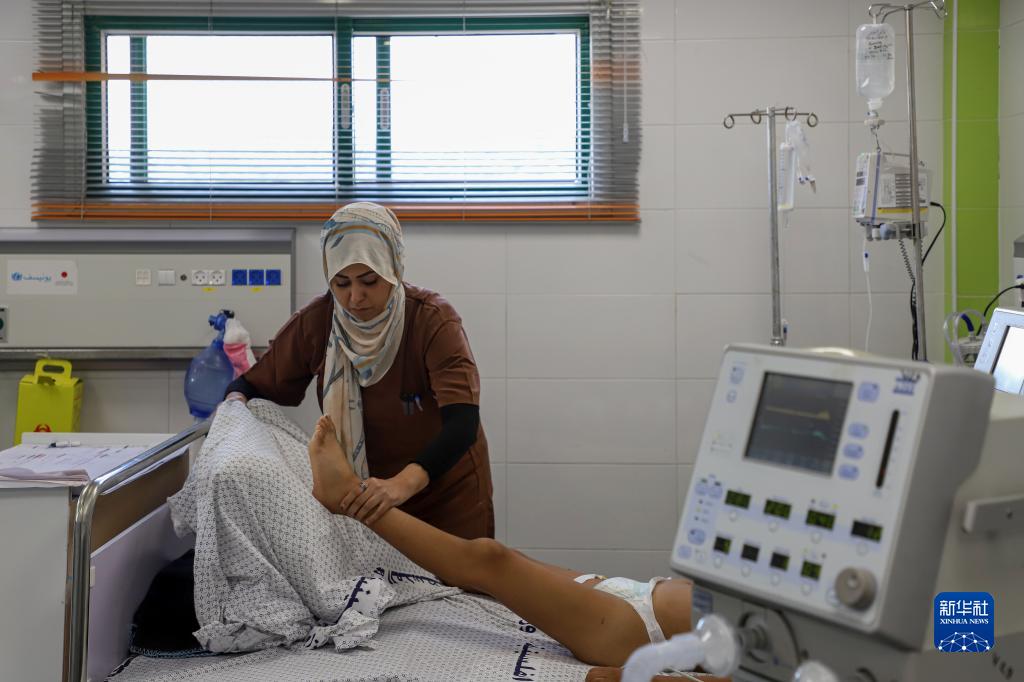 10月22日,在加沙地帶南部城市汗尤尼斯的納賽爾醫院,醫務(wù)人員救治在以色列空襲中受傷的兒童。