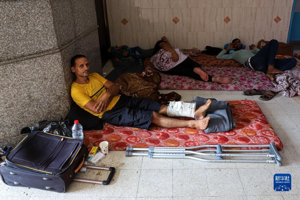 10月22日,在加沙地帶南部城市汗尤尼斯的納賽爾醫院,在以色列空襲中受傷的巴勒斯坦人接受救治。