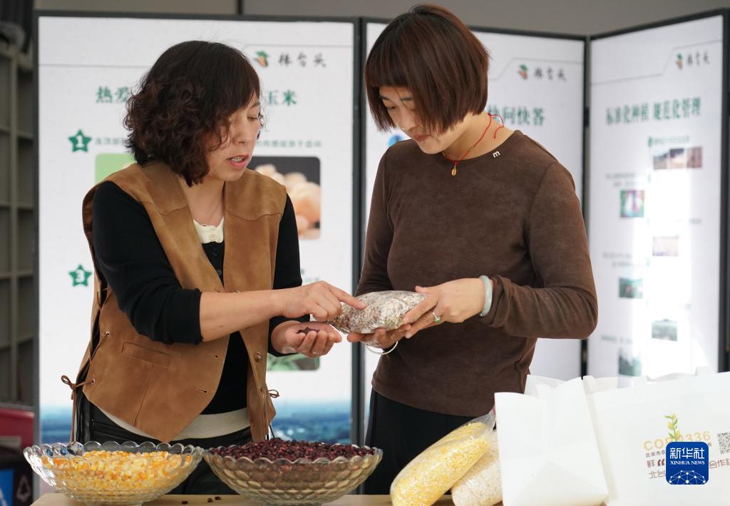 在北京市平谷區北臺頭村村委會(huì ),王翠云(左)向村民介紹視頻直播銷(xiāo)售技巧(10月19日攝)。