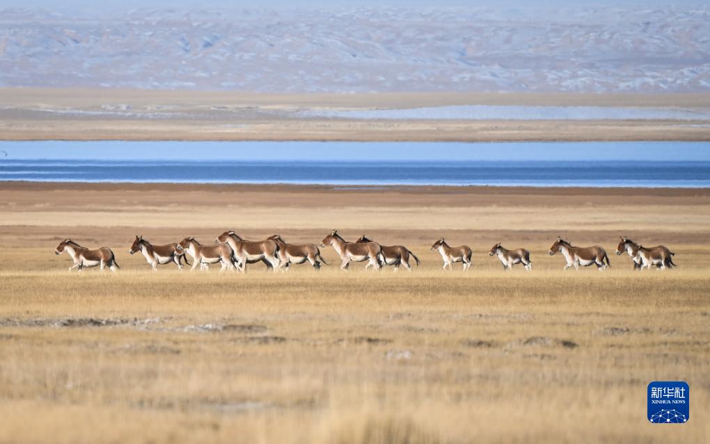 10月18日,在阿爾金山國家級自然保護區,藏野驢在草原上奔跑。