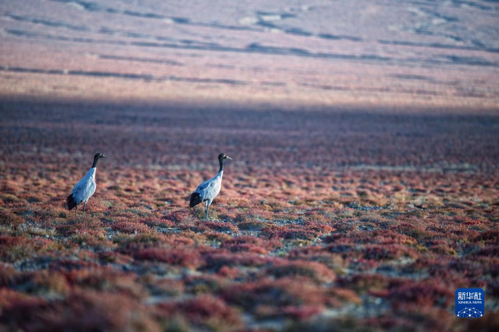 10月13日在阿爾金山國家級自然保護區拍攝的黑頸鶴。