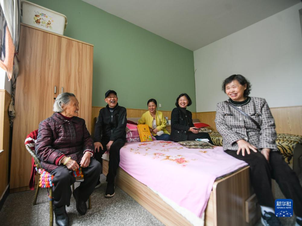 10月20日,在四川省眉山市彭山區社會(huì )福利院,趙鳳章老奶奶(左一)和前來(lái)看望她的家人們聊天。