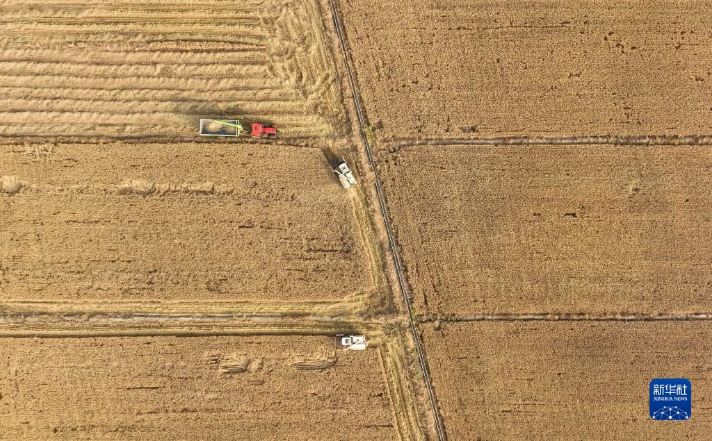 金秋時(shí)節,遼寧省阜新市彰武縣大冷鎮上三家子村的稻田里機聲隆隆,一片豐收的繁忙景象。