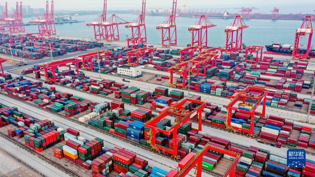 10月23日拍攝的山東港口日照港集裝箱碼頭(無(wú)人機照片)。