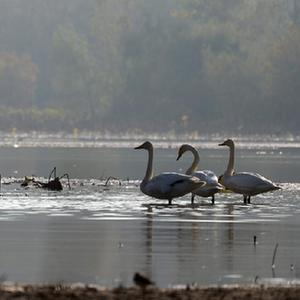 河南三門(mén)峽迎來(lái)首批越冬天鵝