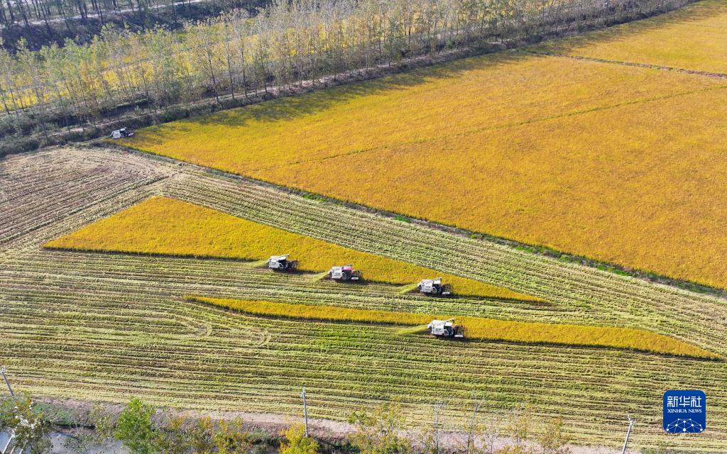 秋收時(shí)節,農民在田間忙著(zhù)收獲各種作物,各地一派農忙景象。