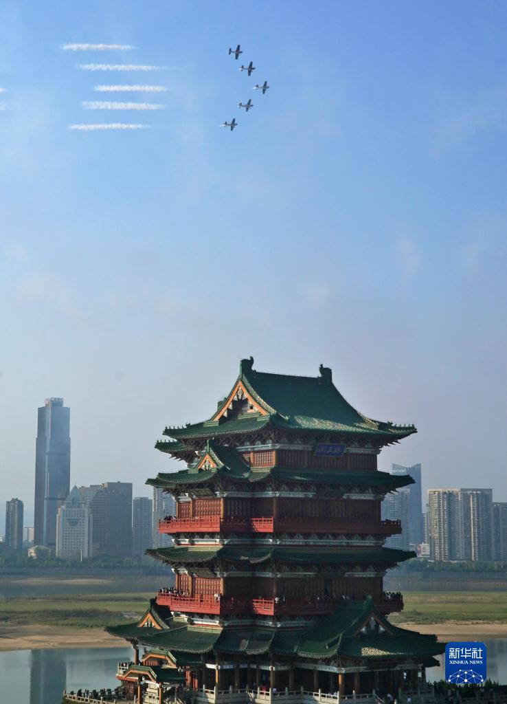 10月24日,歐洲環(huán)球之星特技飛行表演隊在南昌滕王閣景區上空進(jìn)行飛行表演。