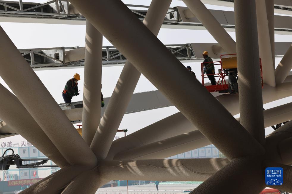 工人在雄安體育中心體育場(chǎng)施工(10月24日攝)。