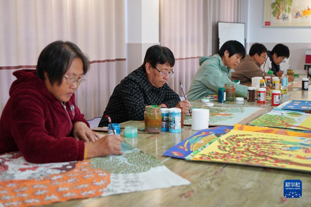 10月25日,辛集市王下村農民在趕制農民畫(huà)產(chǎn)品訂單。