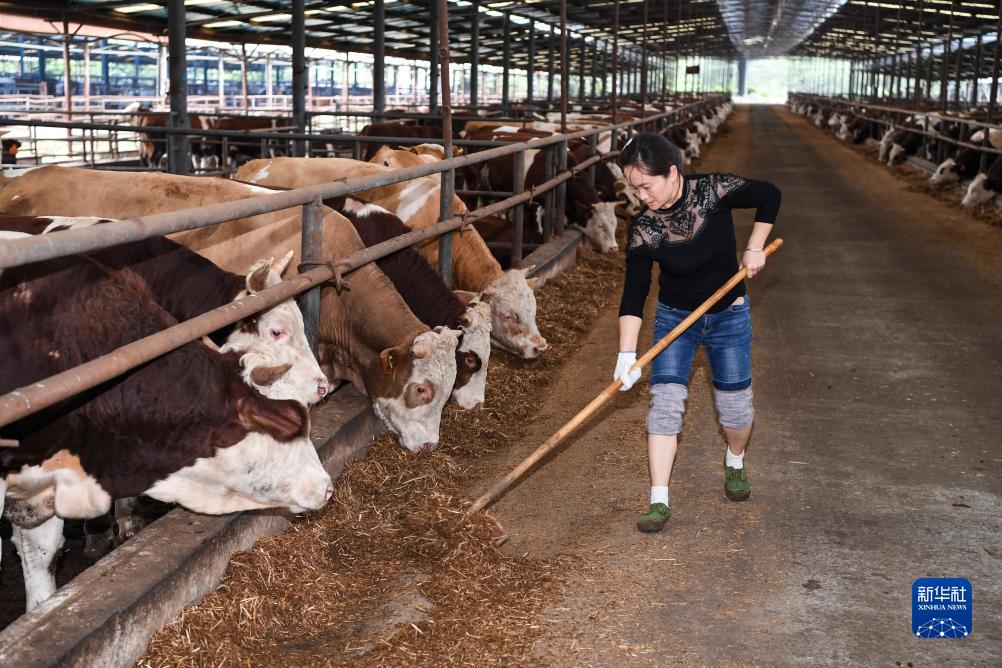 10月23日,工作人員在重慶市豐都縣高家鎮厚池壩村肉牛育肥場(chǎng)給肉牛喂食。