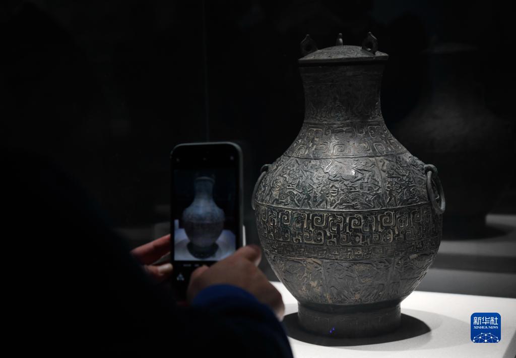 10月25日,觀(guān)眾在秦始皇帝陵博物院觀(guān)看成都博物館館藏文物狩獵紋銅壺。