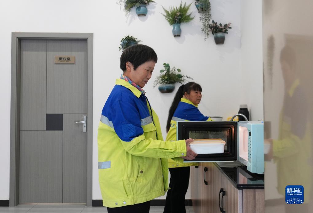 10月25日,在重慶市北碚區云清路“勞動(dòng)者港灣”,一名環(huán)衛工人使用微波爐加熱午飯。