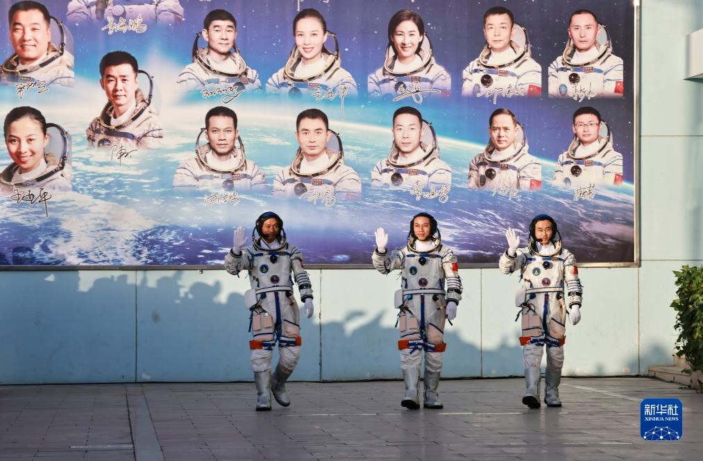 10月26日上午,神舟十七號載人飛行任務(wù)航天員乘組出征儀式在酒泉衛星發(fā)射中心問(wèn)天閣圓夢(mèng)園廣場(chǎng)舉行。這是航天員湯洪波(中)、唐勝杰(右)、江新林在出征儀式上。