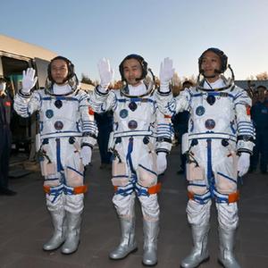 10月26日上午,神舟十七號載人飛行任務(wù)航天員乘組出征儀式在酒泉衛星發(fā)射中心問(wèn)天閣圓夢(mèng)園廣場(chǎng)舉行。這是航天員湯洪波(中)、唐勝杰(右)、江新林在出征儀式上。