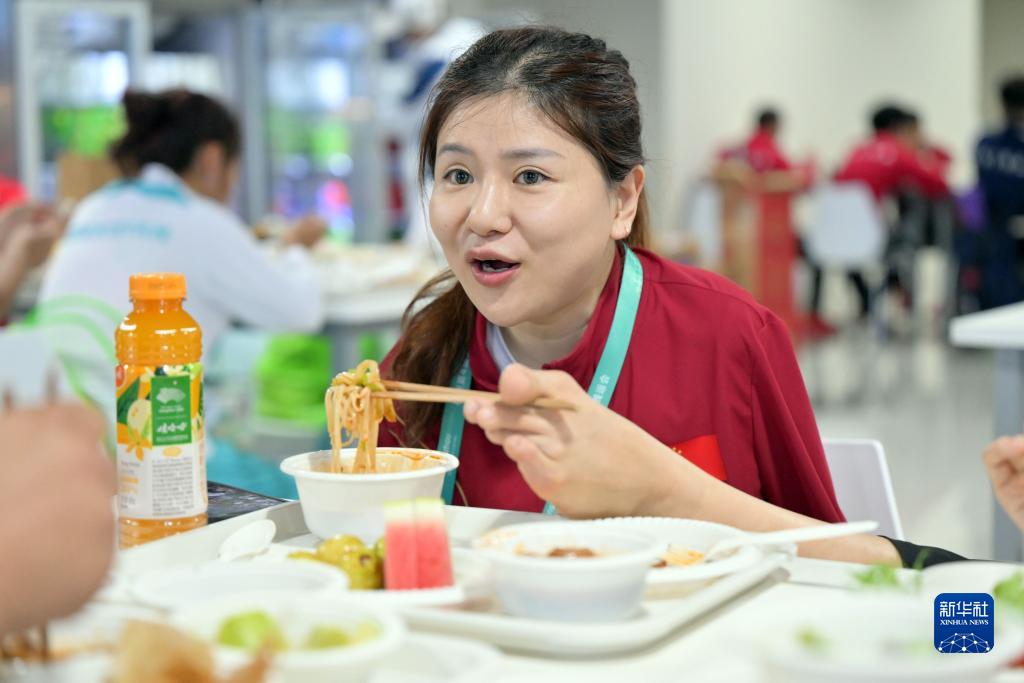 10月23日,盧冬在杭州亞殘運會(huì )運動(dòng)員村吃晚飯。