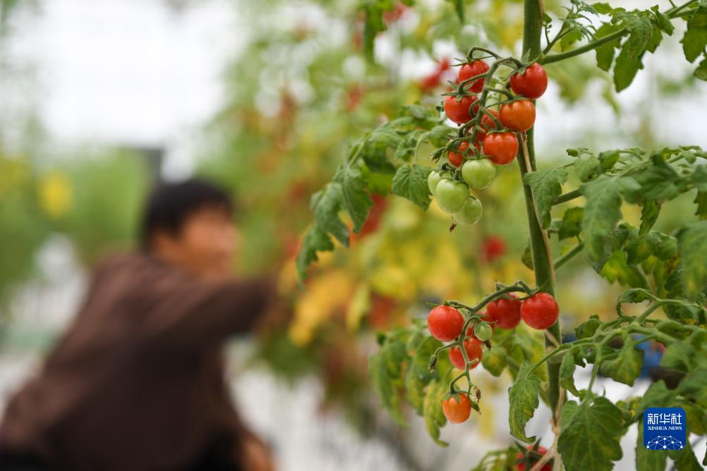 這是10月25日在魯渝(壽光)蔬菜現代產(chǎn)業(yè)園南門(mén)科技示范園拍攝的西紅柿。