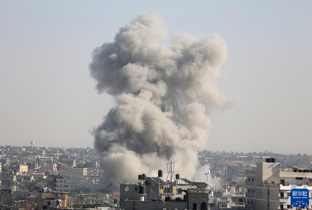 10月26日,以色列空襲造成的濃煙從加沙地帶城市拉法城中升起。