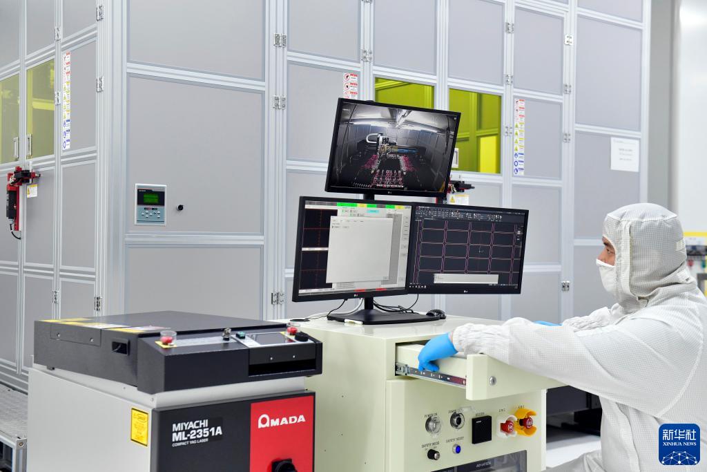 10月26日,在山東奧萊電子科技有限公司生產(chǎn)車(chē)間,工作人員在生產(chǎn)OLED第六代金屬掩膜板。