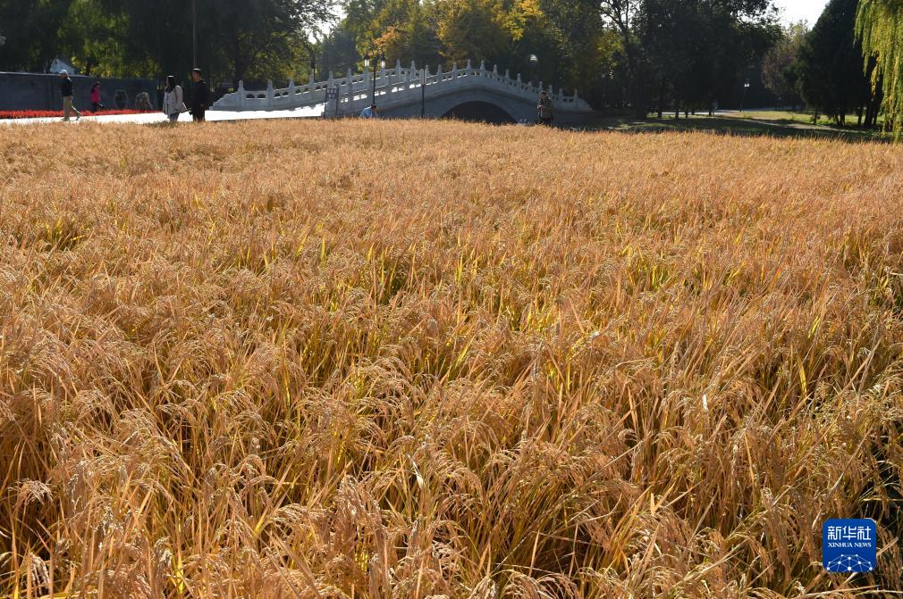 10月27日在圓明園“多稼如云”景區拍攝的即將收割的水稻。
