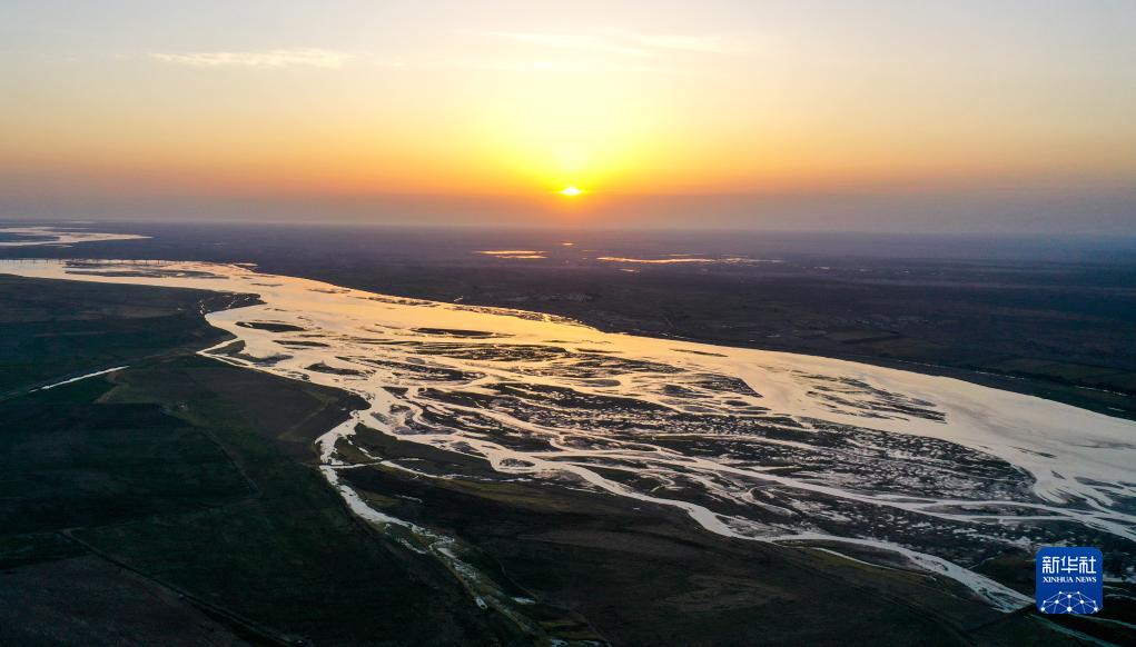 2023年9月15日,黃河從內蒙古巴彥淖爾市臨河區雙河鎮流過(guò)(無(wú)人機照片)。