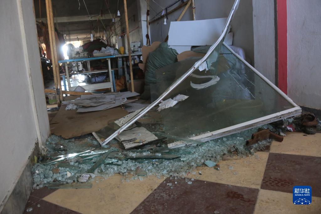 這是10月27日在阿富汗首都喀布爾拍攝的爆炸現場(chǎng)碎裂的玻璃。