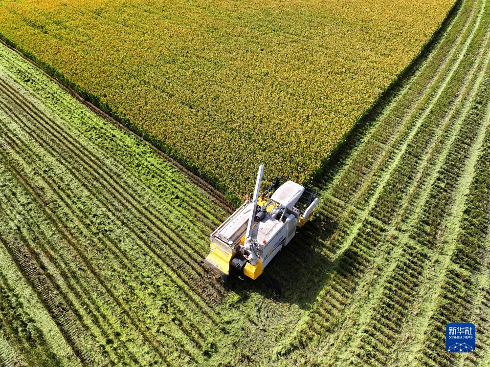 江蘇南通:無(wú)人機械水稻收割忙