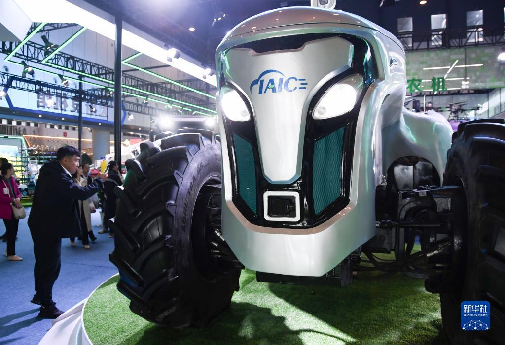 10月27日,在第九屆四川農業(yè)博覽會(huì )·成都國際都市現代農業(yè)博覽會(huì )上,觀(guān)眾在觀(guān)看展出的農機。