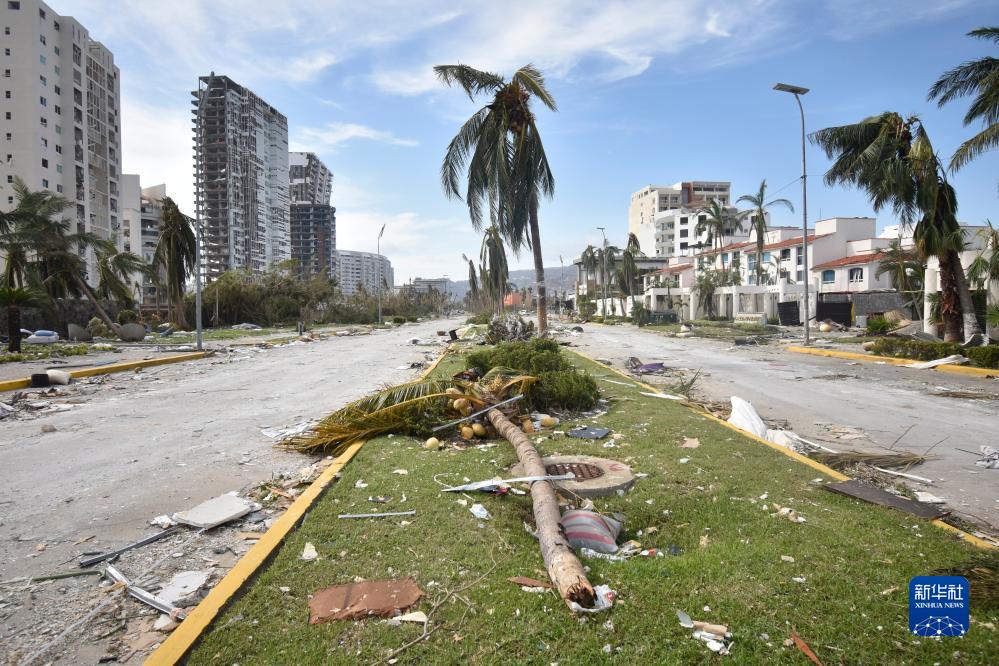 10月26日,在墨西哥格雷羅州阿卡普爾科,道路被颶風(fēng)破壞。