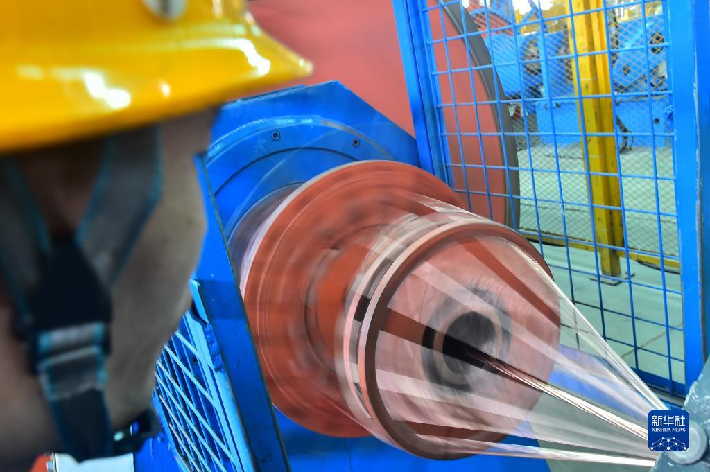 10月27日,技術(shù)工人在山東省聊城市陽(yáng)谷縣漢河(陽(yáng)谷)電纜有限公司生產(chǎn)車(chē)間電纜生產(chǎn)線(xiàn)上值守。