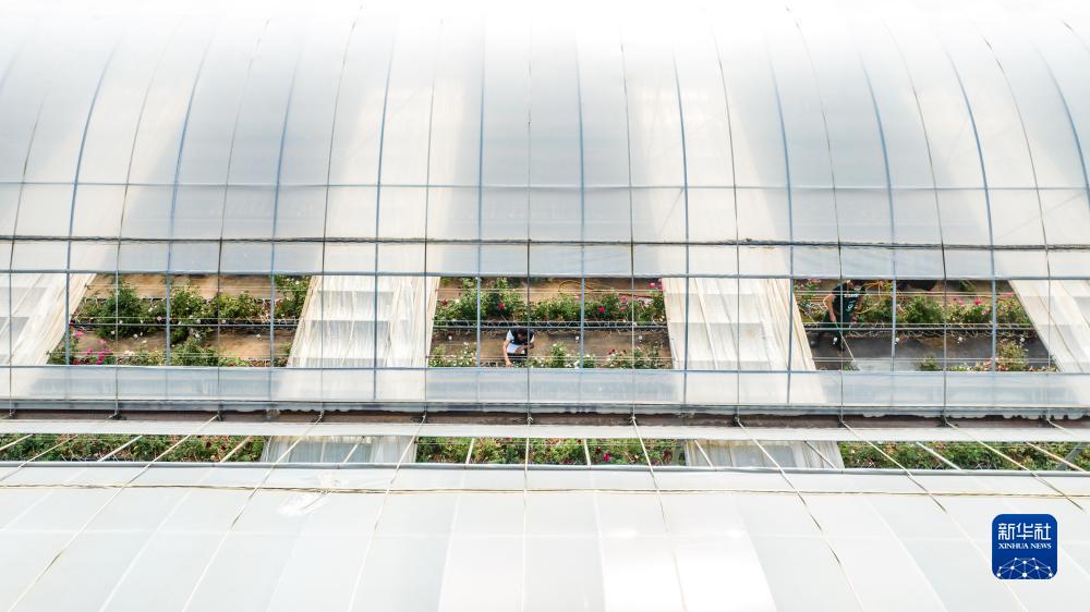 云南省安寧市現代農業(yè)園區玫瑰種植示范園一景(無(wú)人機照片,10月20日攝)。