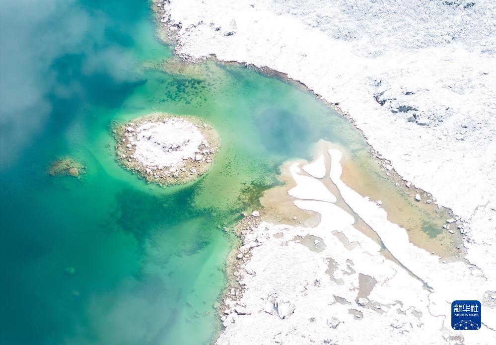 俯瞰黨嶺村大海子碧綠的湖水(10月27日無(wú)人機攝)。