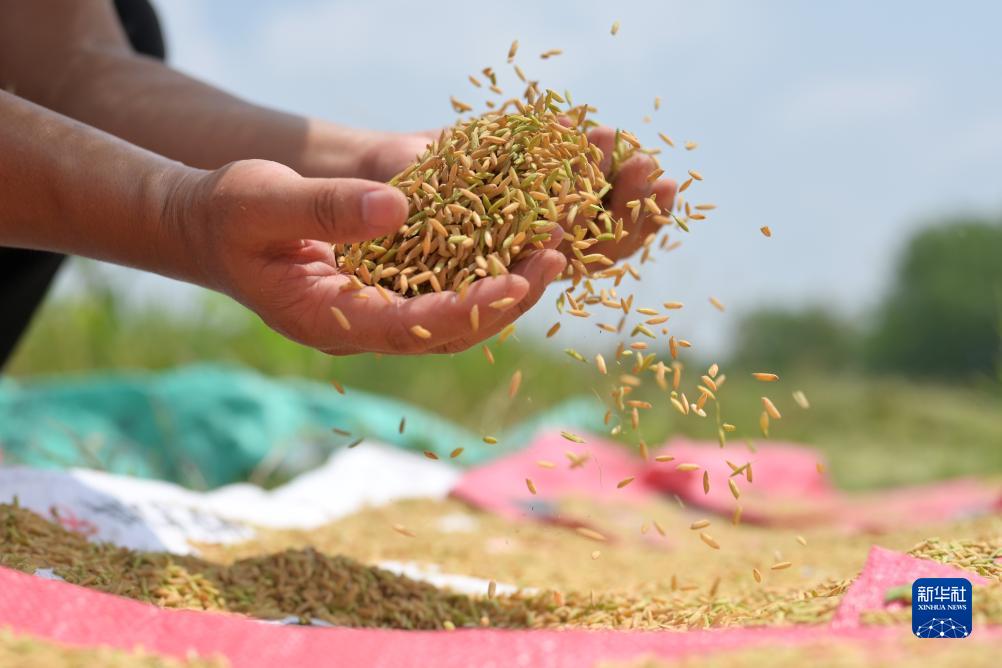 這是8月10日在婁底市雙峰縣印塘鄉鹽井灣村“稻再油”示范片拍攝的頭季稻谷。