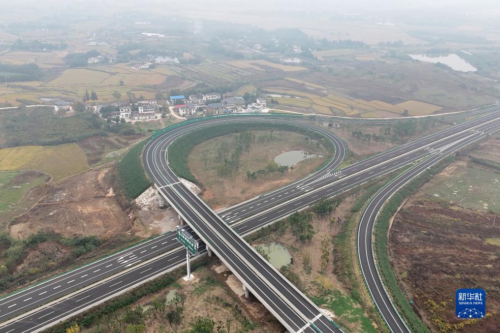 這是10月28日拍攝的無(wú)為至岳西高速公路廬江北互通(無(wú)人機照片)。