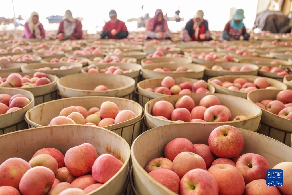 連日來(lái),山東省榮成市各大蘋(píng)果園里一派繁忙景象,果農們抓緊時(shí)間收獲蘋(píng)果,分揀、裝運發(fā)往各地市場(chǎng)。