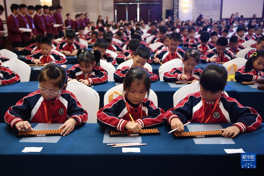 10月29日,小選手在活動(dòng)現場(chǎng)進(jìn)行珠心算成果展演。