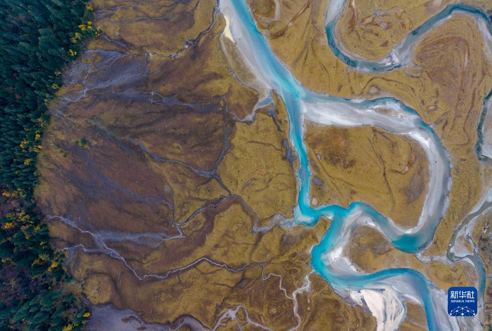 時(shí)值金秋,西藏林芝市秋色已濃,黃葉與初雪交織,流水并雪山輝映,景色如詩(shī)如畫(huà)。