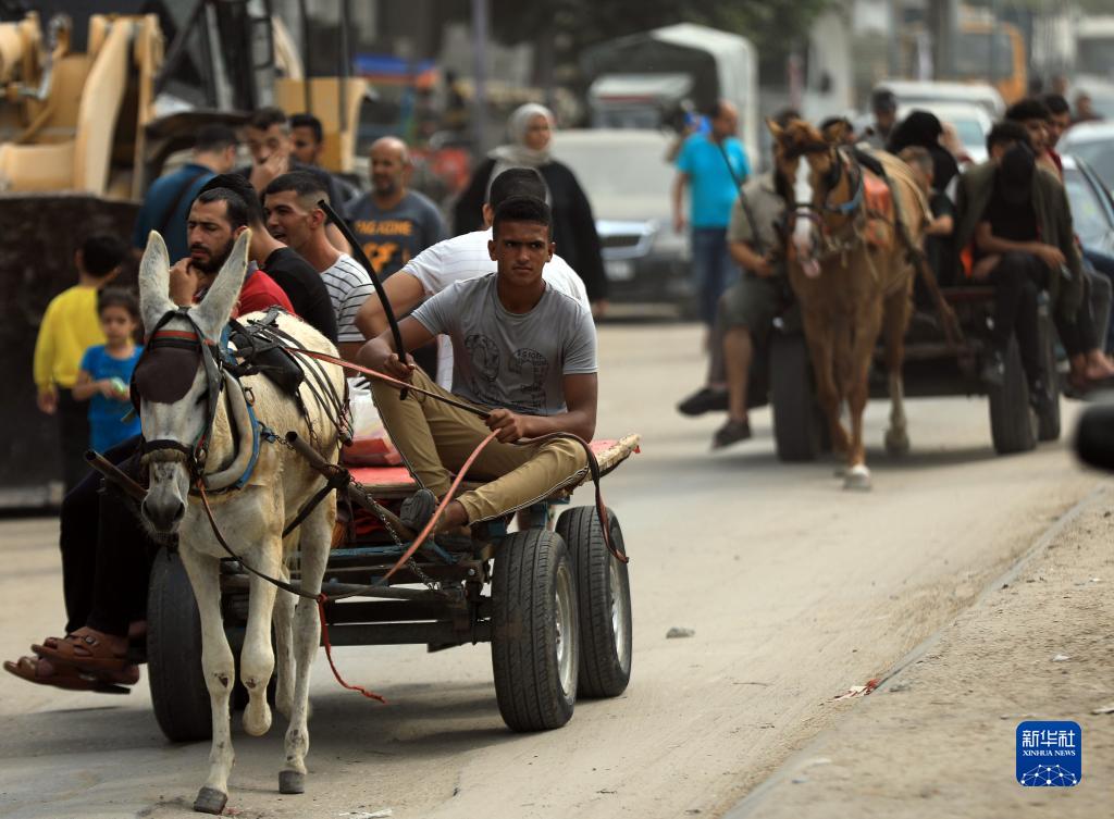 10月29日,因缺乏燃料,人們在加沙地帶南部城市汗尤尼斯使用驢車(chē)出行。