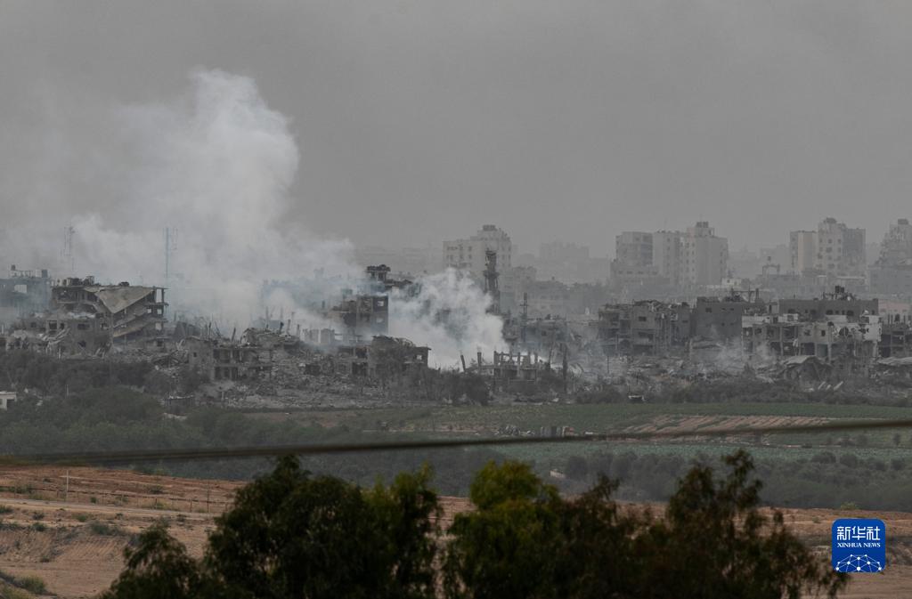 這張10月29日在加沙邊境以色列一側拍攝的照片顯示,加沙地帶北部區域被以軍襲擊后升起濃煙。