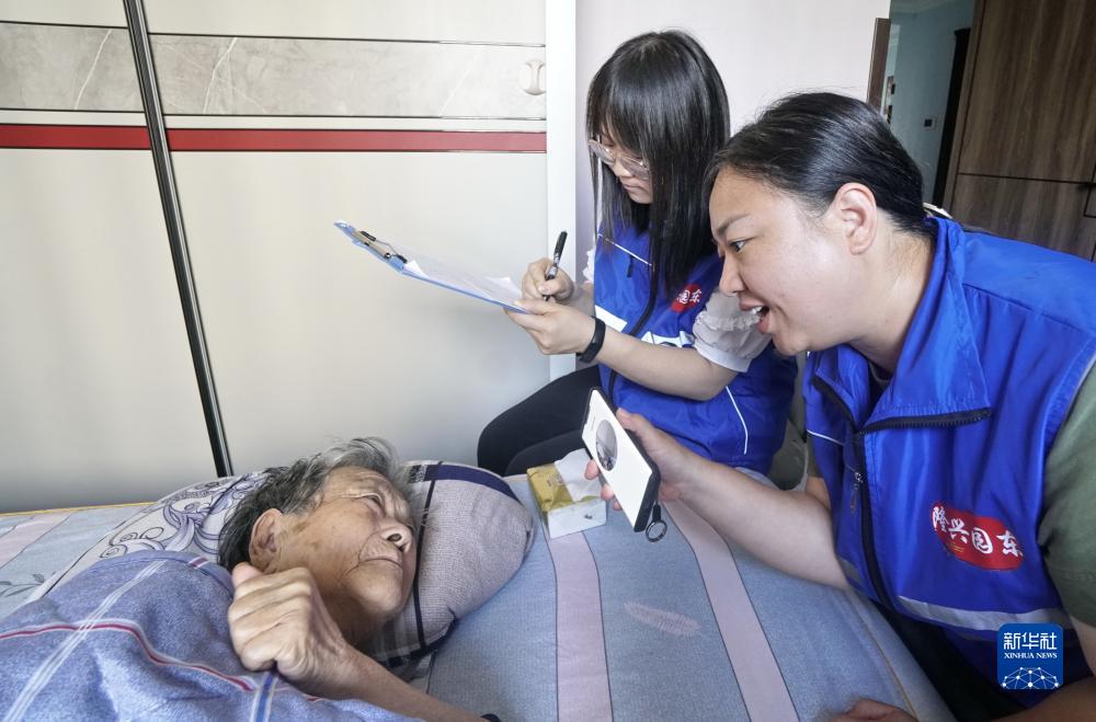 2023年8月31日,北京市大興區龐各莊鎮隆興園社區政務(wù)服務(wù)中心的工作人員上門(mén)為行動(dòng)不便的老人辦理社保人臉識別業(yè)務(wù)。