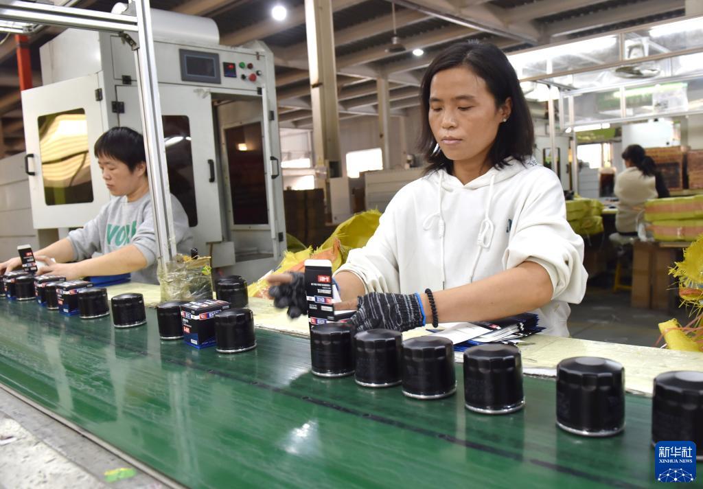 10月30日,威縣一家汽車(chē)濾芯生產(chǎn)企業(yè)工人在生產(chǎn)線(xiàn)上包裝產(chǎn)品。